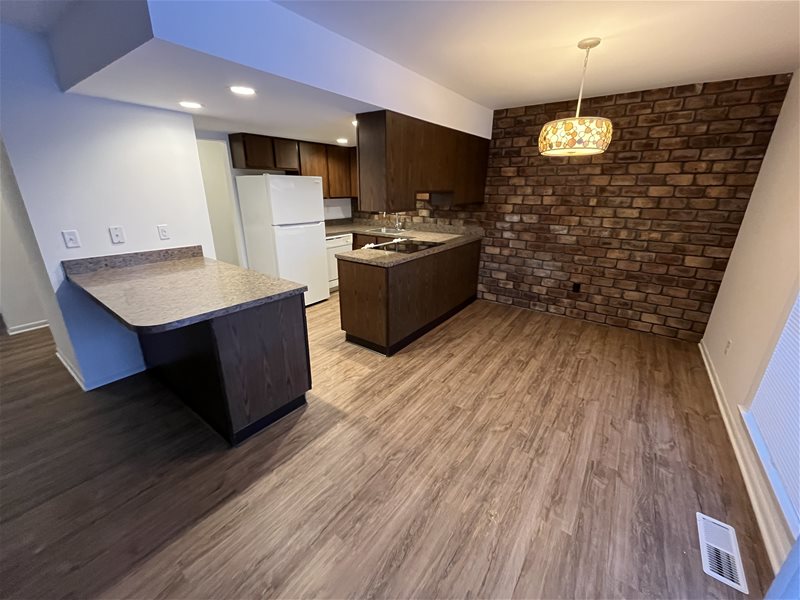 Discover the perfect balance of style and function in this beautifully updated apartment. The heart of the home features an expansive open floor plan, highlighted by brand-new flooring and flooded with natural light. The seamless flow between the kitchen and living areas makes it ideal for both relaxing and entertaining. The oversized primary bedroom is a true standout, offering enough space for a king-sized bed and a sitting area. It features a massive walk-in closet with plenty of storage for even the most extensive wardrobe. Forget the laundromat—this unit comes fully equipped with a full-sized washer and dryer. You’ll also enjoy the security and convenience of your own private single-stall garage, perfect for keeping your vehicle protected or for extra storage. Step outside through the sliding glass doors to your spacious private deck. Whether you’re sipping your morning coffee or watching the sunset, it’s the perfect outdoor extension of your living space.